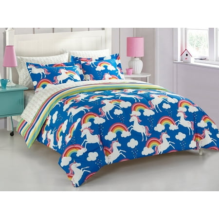 Fairy Tale Rainbows & Unicorns Girls Twin Comforter Set (6 ...
