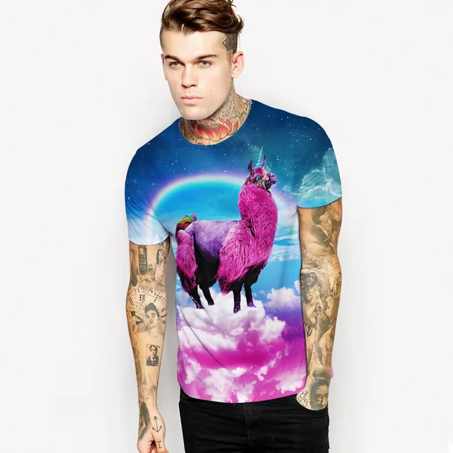Rainbow Alpaca Unicorn Men's T shirt short sleeved Novelty ...